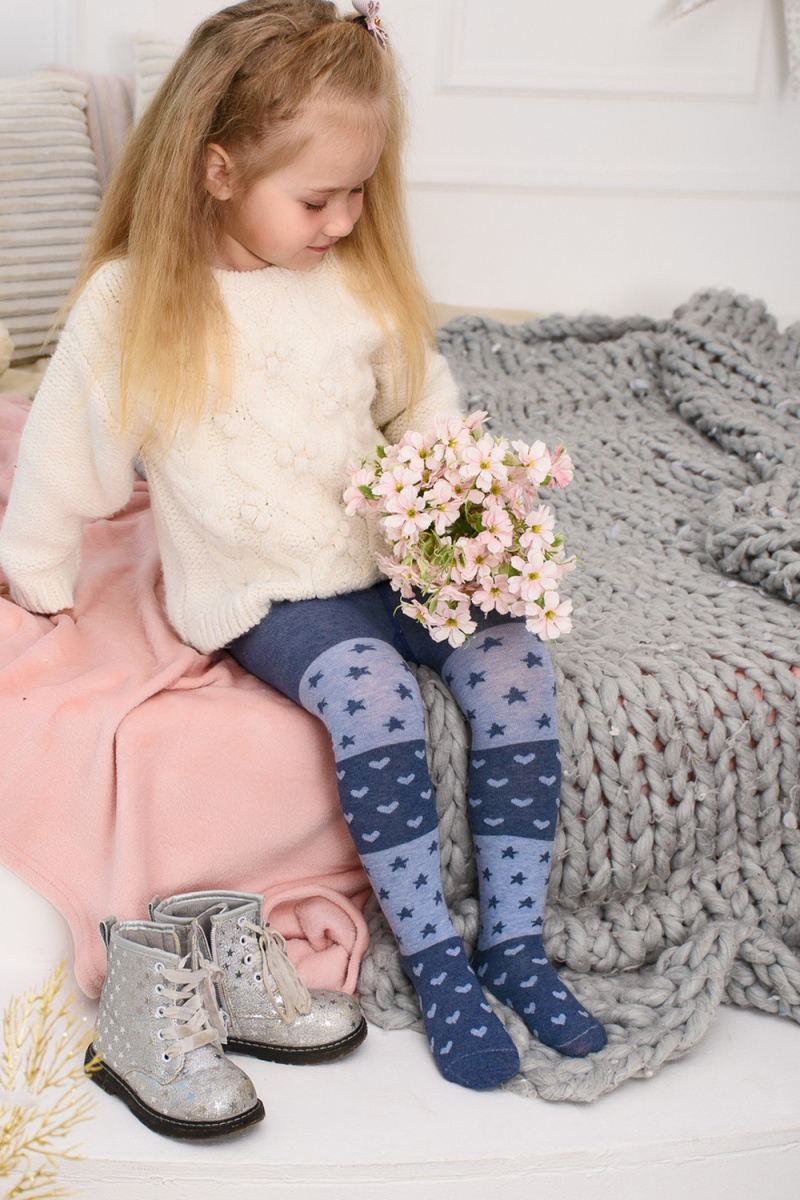 Колготки с вязаным рисунком в виде сердечек и звездочек для девочек