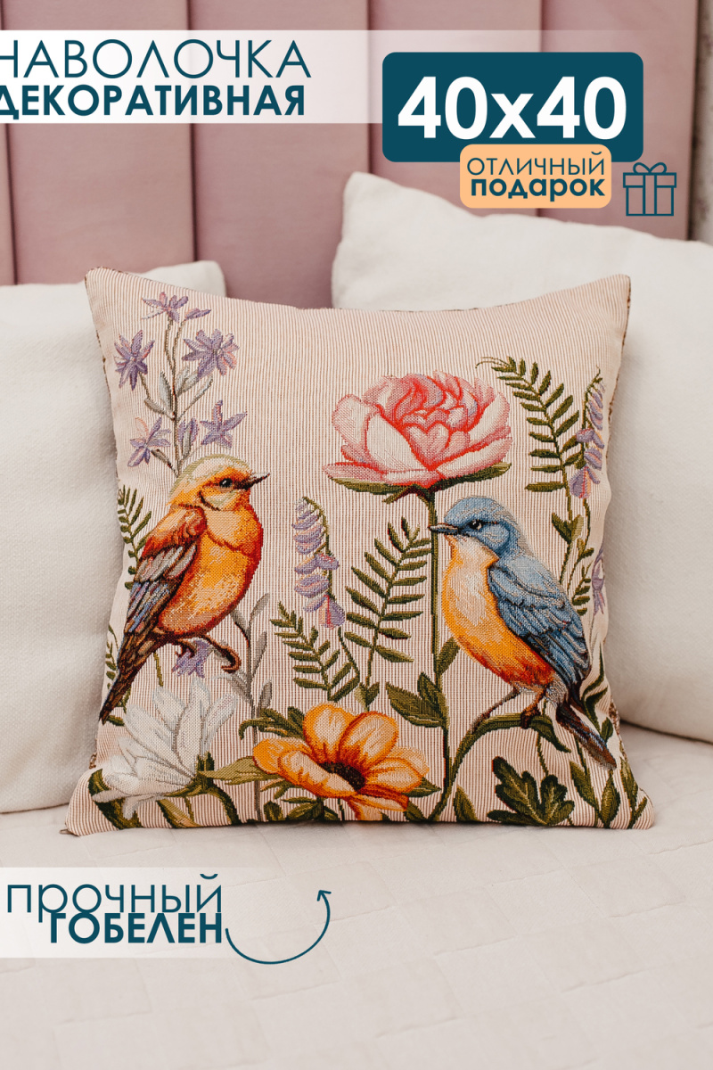 Наволочка декоративная 38х38 Птицы